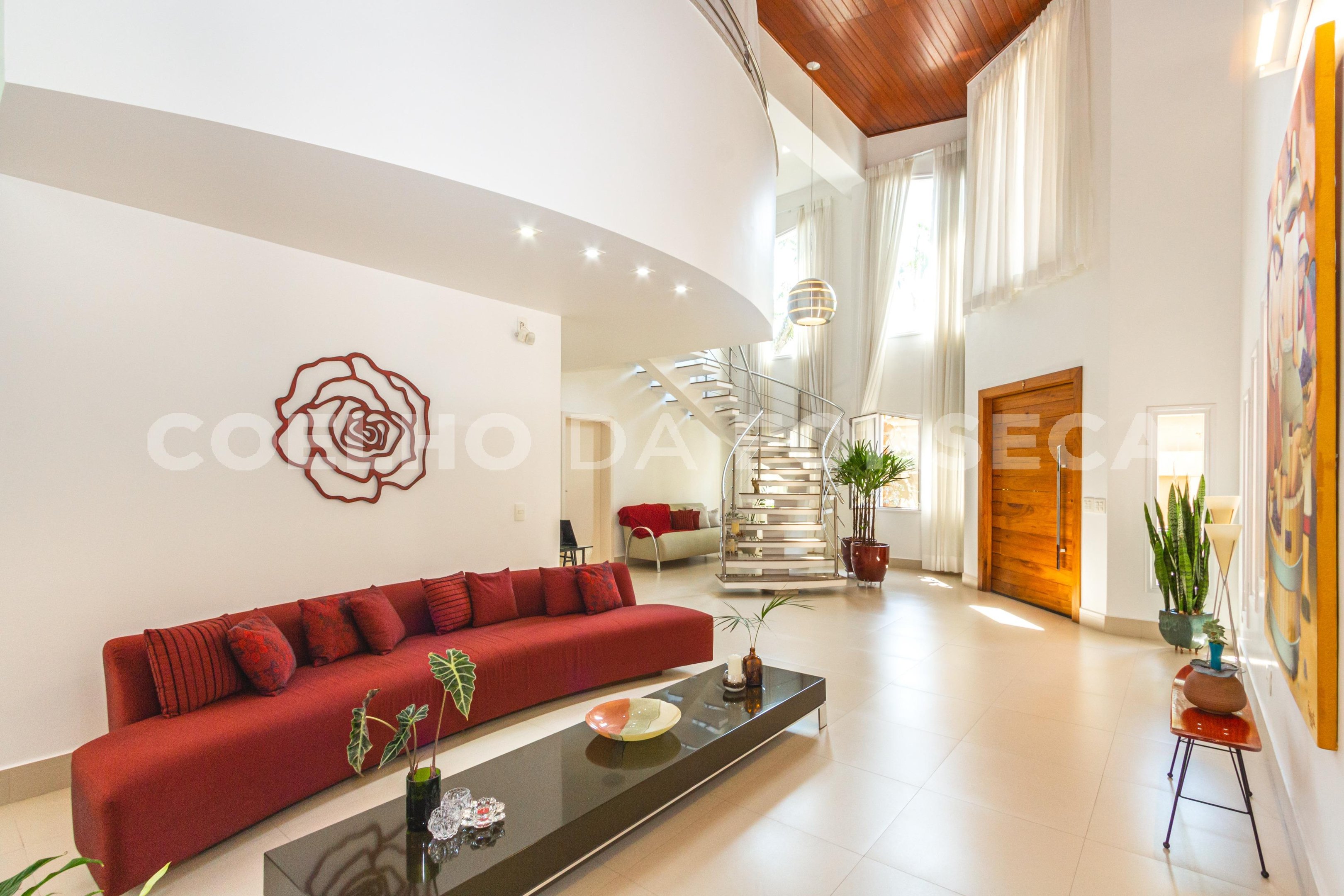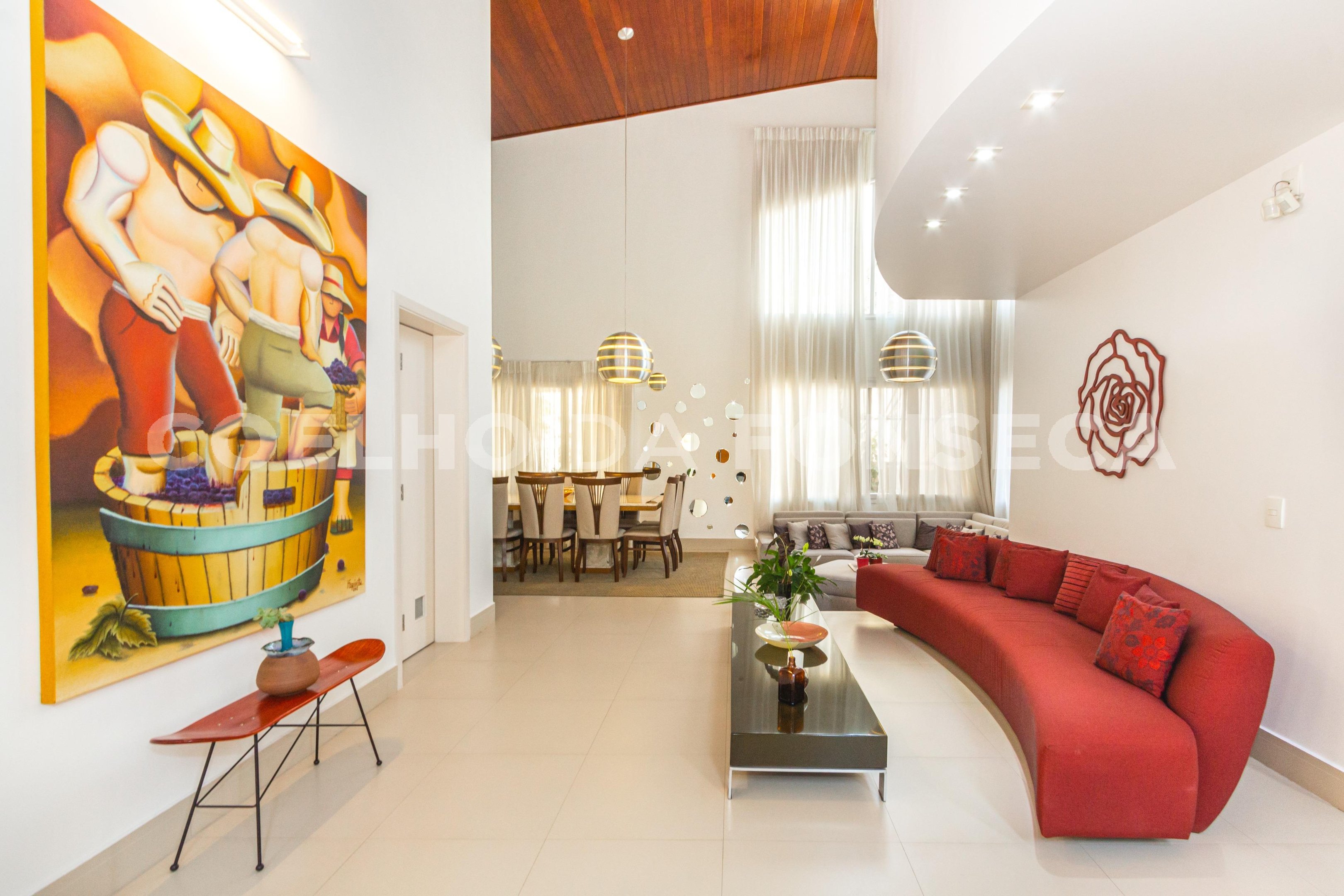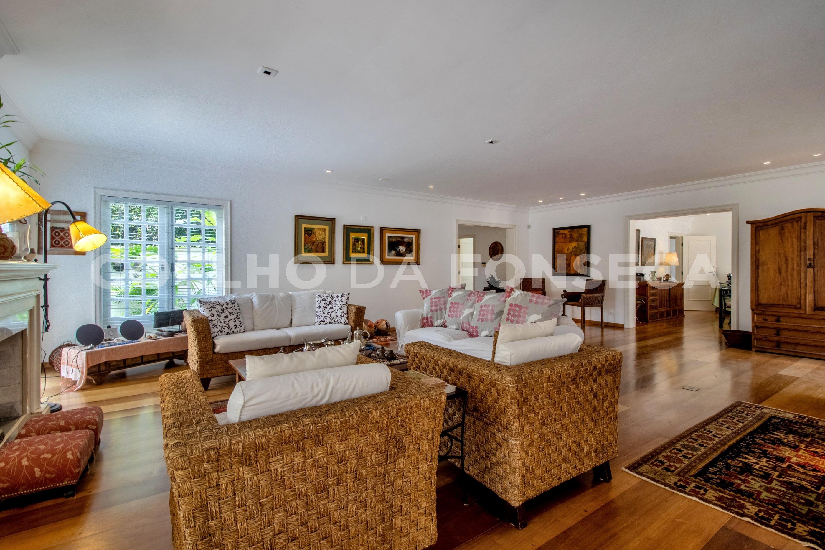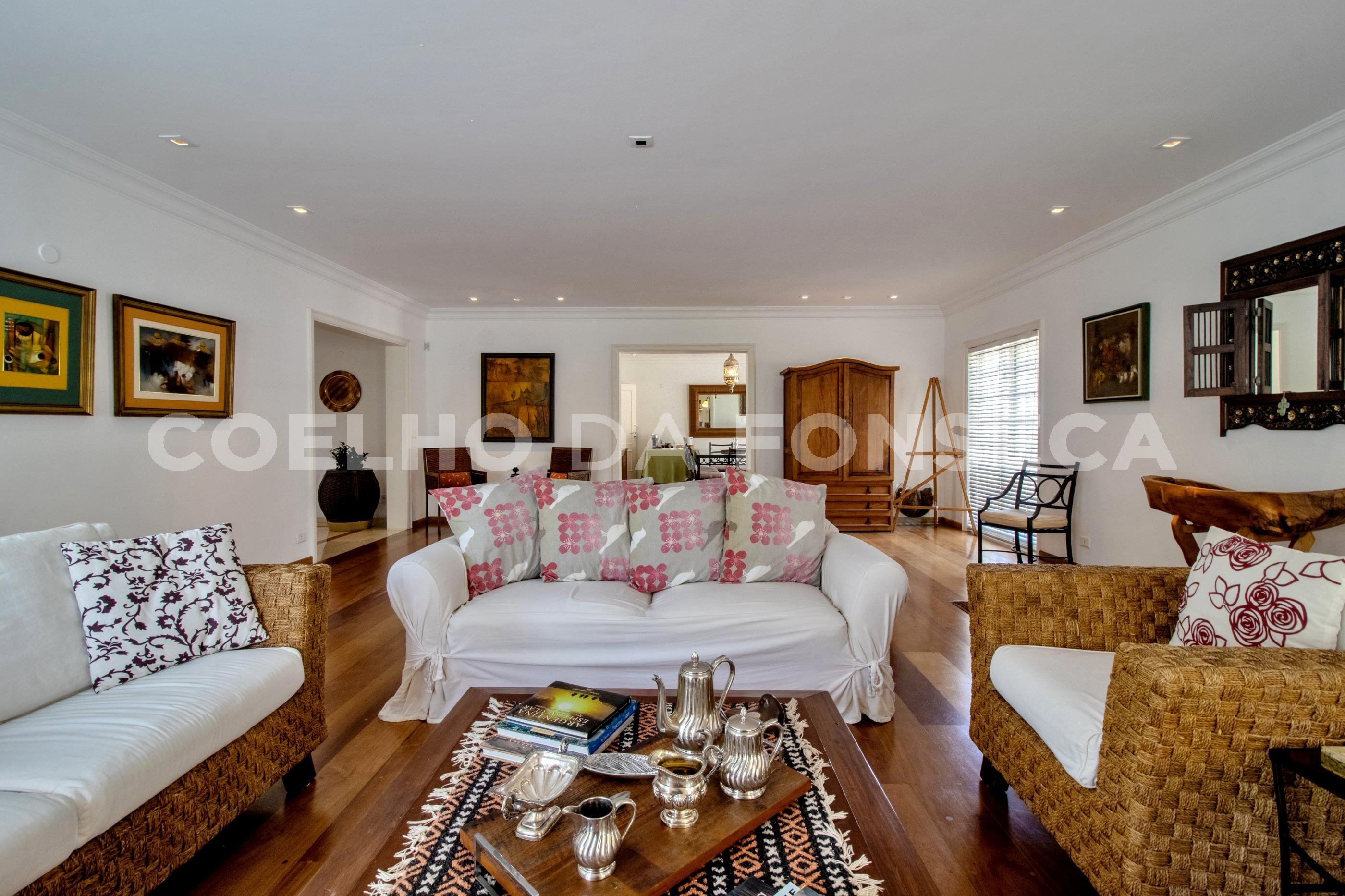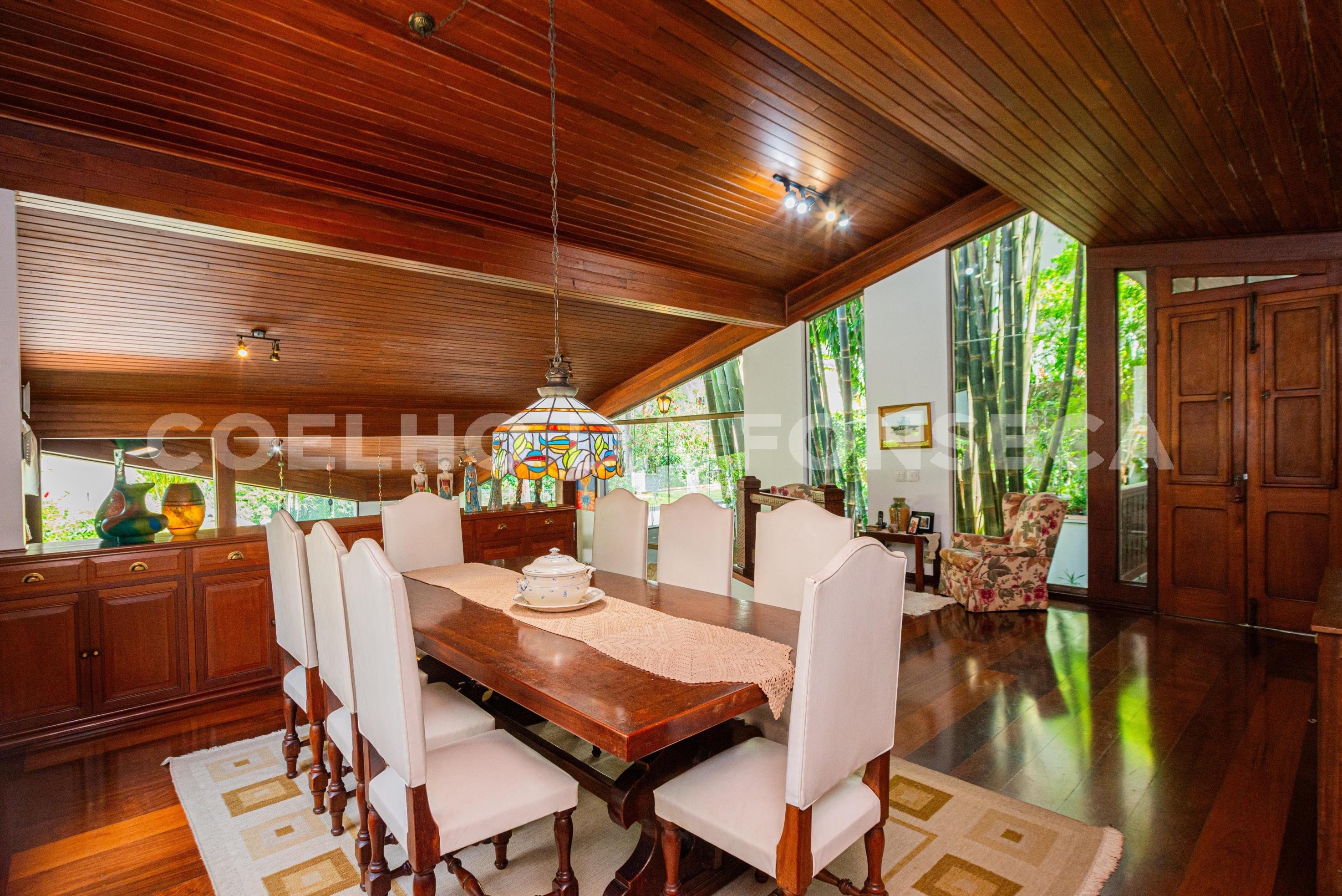 Linda casa reformada totalmente integrada mas com lindas portas de correr em todos os ambientes que podem proporcionar privacidade se necessário. Piso de madeira no living e na área dos dormitórios, Ar-condicionado em todos ambientes, projeto de iluminação e de som. Área gourmet com churrasqueira e forno de pizza e piscina embaixo de deck móvel por controle remoto. A área de serviço e dois quartos grandes e sala de funcionários fica no andar da garagem e o elevador acessa todos os níveis.