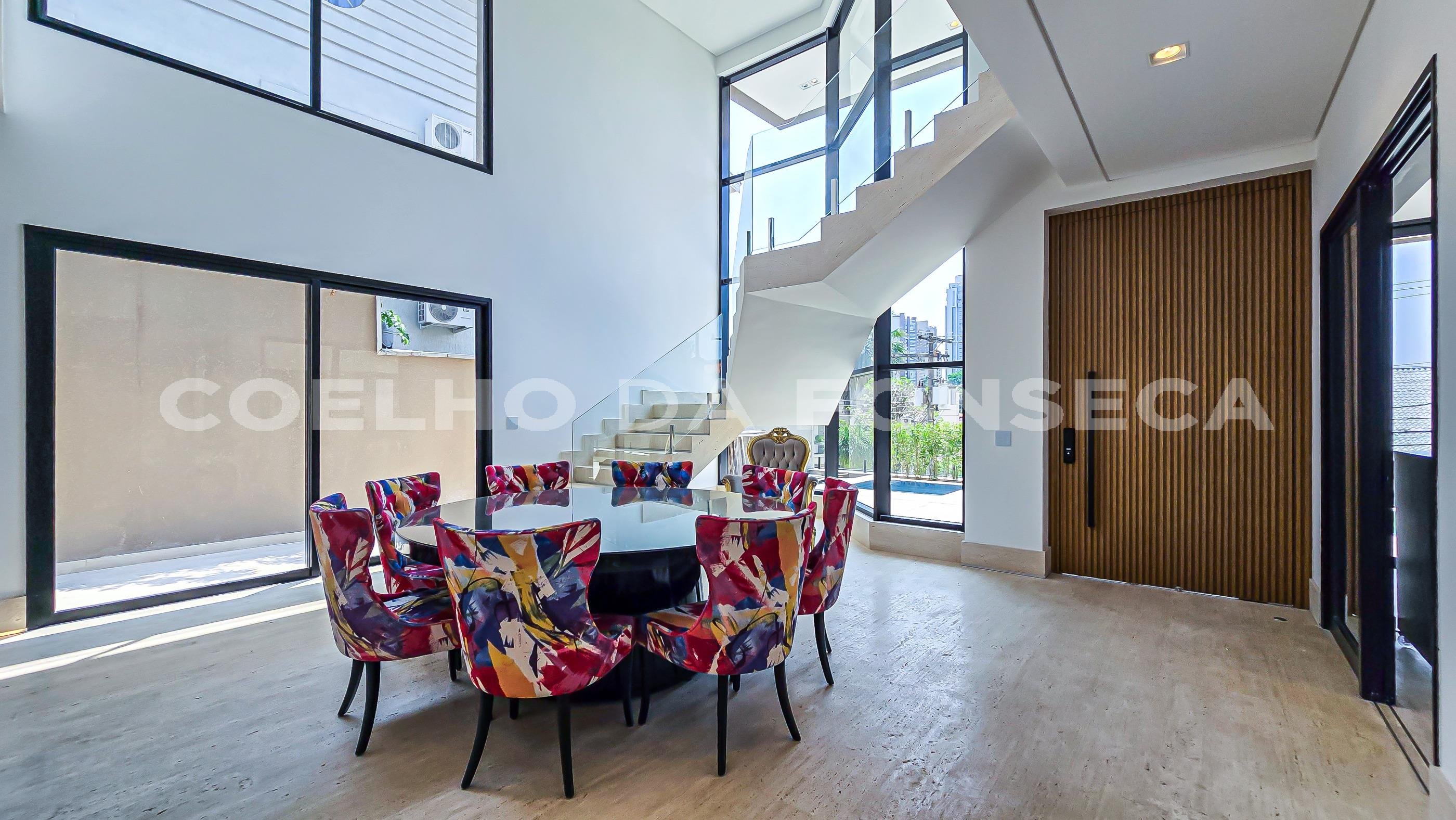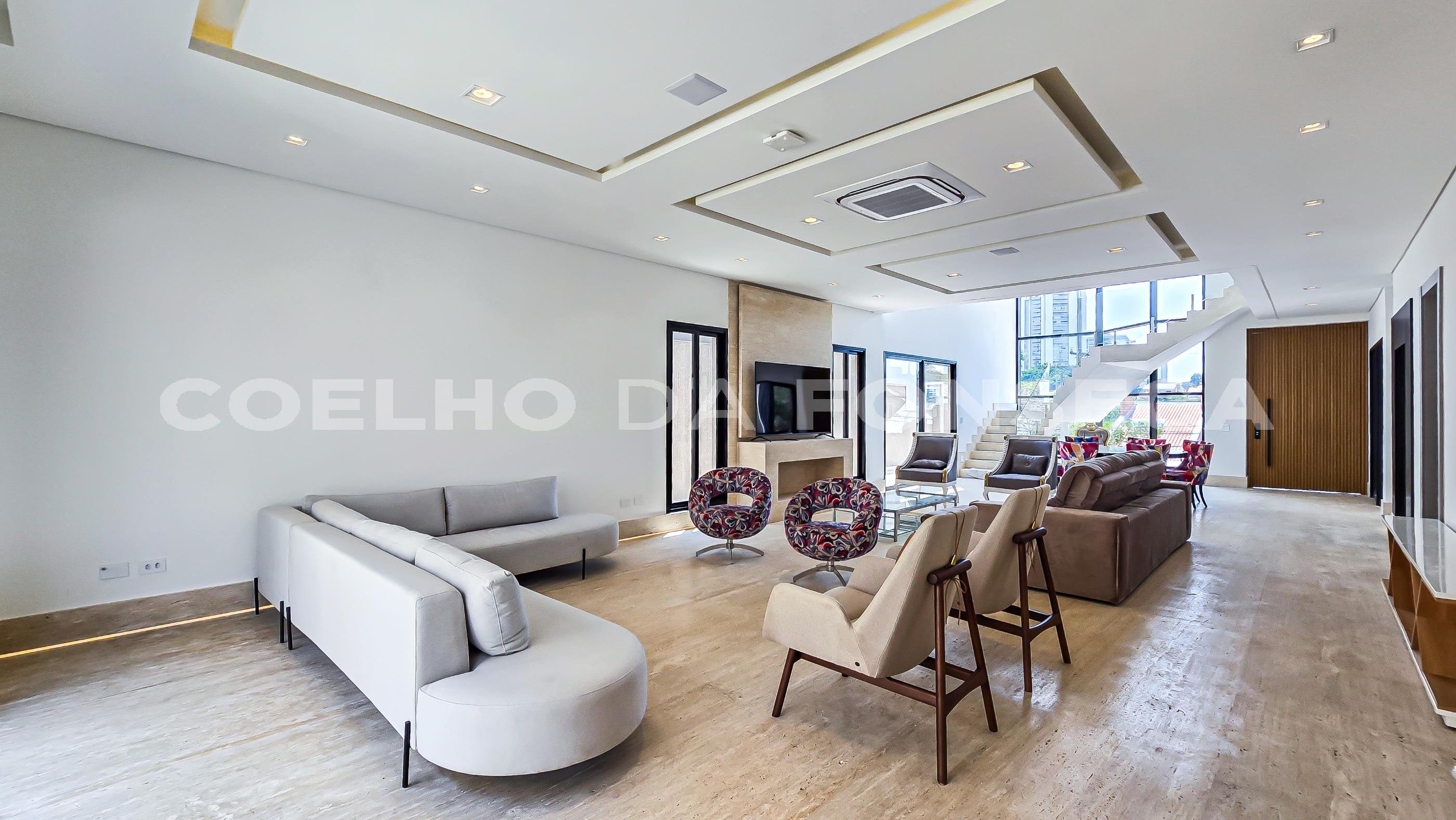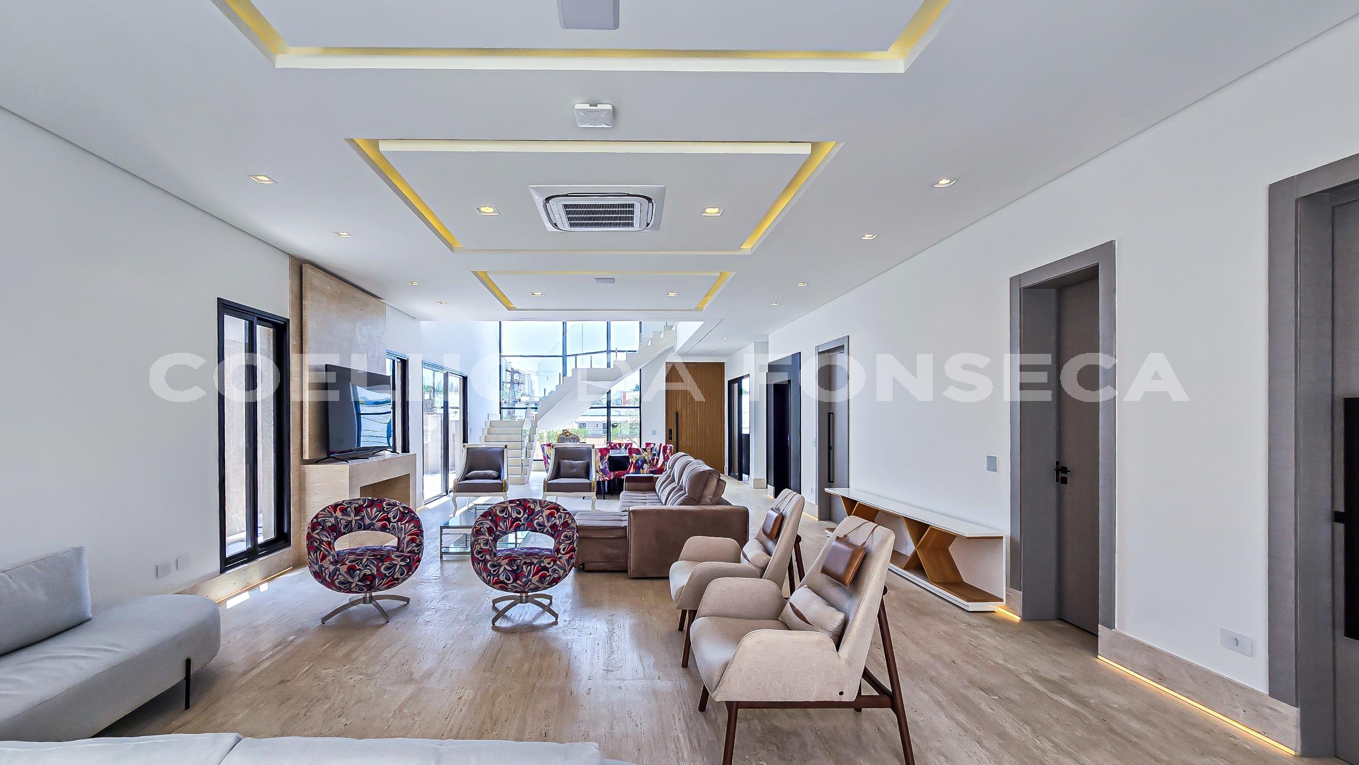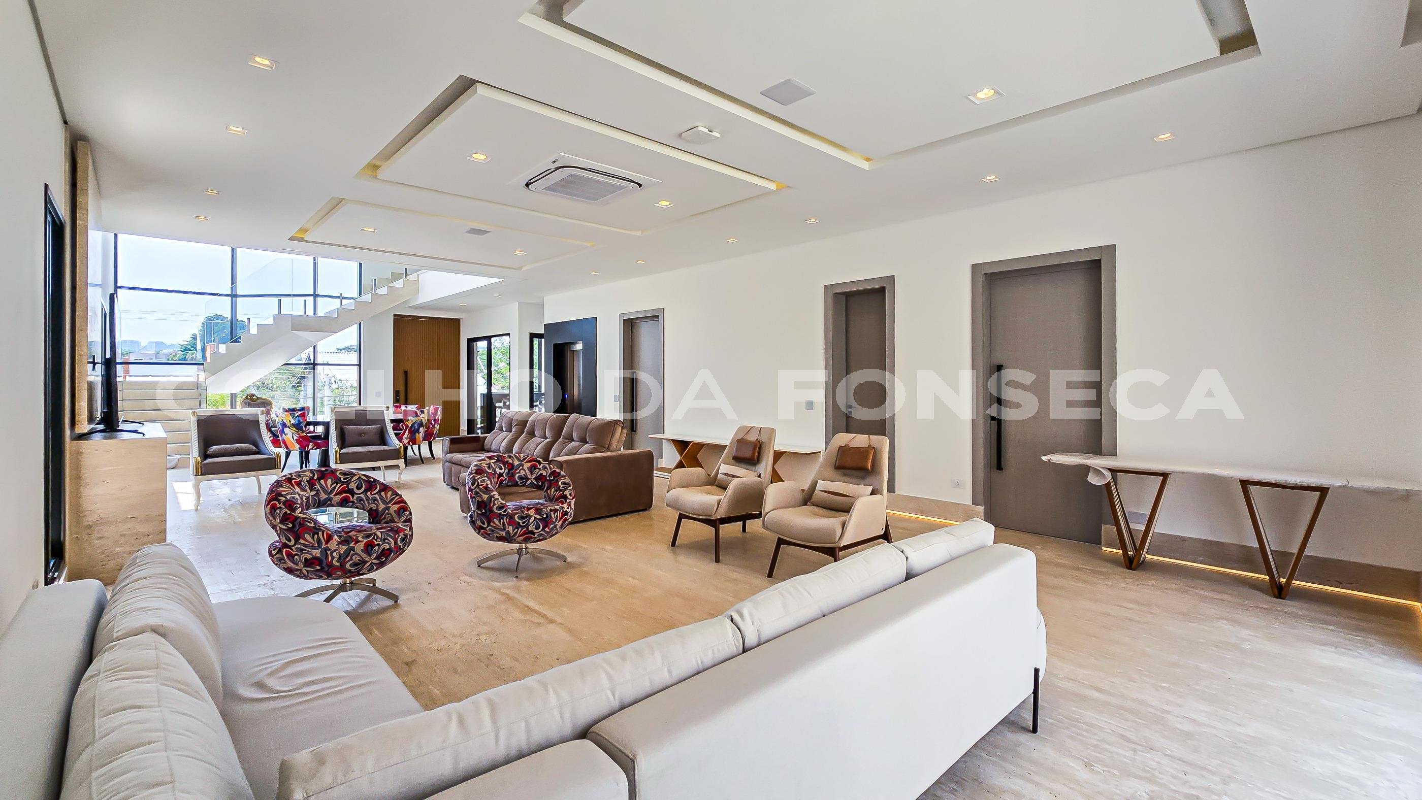 Projeto do renomado arquiteto João Armentano e paisagismo de Maurício Prada, estilo arrojado e clean, espaçoso living com pé-direito alto, cinco amplas suítes, sala cinema, sala de jogos, adega, brinquedoteca, academia, atelier, gerador full, ar condicionado central, piscina externa climatizada, sauna, espetacular área de lazer em lote duplo. Tudo isso rodeado de muito verde. Ótima localização dentro do condomínio, bem próximo da portaria.