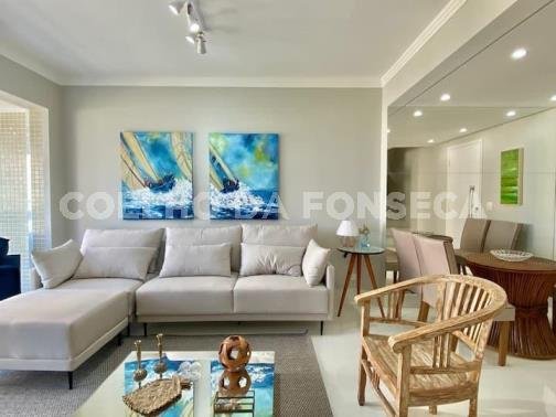 A um quarteirão de distância da praia, esse apartamento mobiliado tem uma vista privilegiada para a mata, dando privacidade e amplitude para toda a área íntima. Ar condicionado em todos os ambientes, cozinha americana e churrasqueira na varanda. Condomínio com lazer completo e serviço de praia.