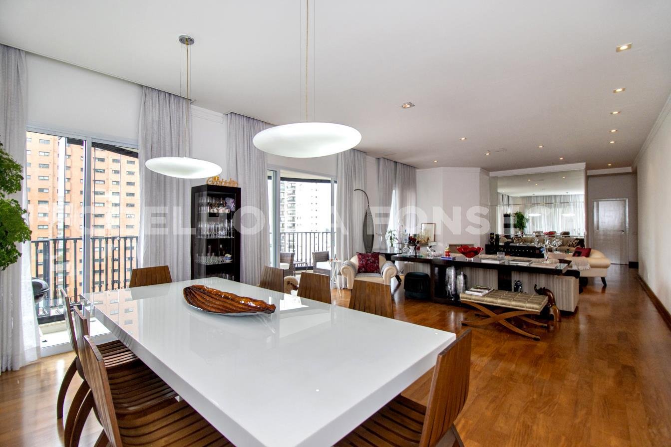Este apartamento exclusivo e renovado na Chácara Klabin une sofisticação e tecnologia em uma planta cercada por varandas e luz natural. O amplo living integra três ambientes com ar-condicionado, som central, adega para duzentas e cinquenta garrafas e churrasqueira. A área íntima possui três suítes com marcenaria planejada, incluindo a master com closet e cuba dupla. São quatro vagas com infraestrutura para carro elétrico, depósito e gerador full para toda a unidade. O lazer é completo com piscinas e academia ao lado do metrô. Agende sua visita exclusiva!