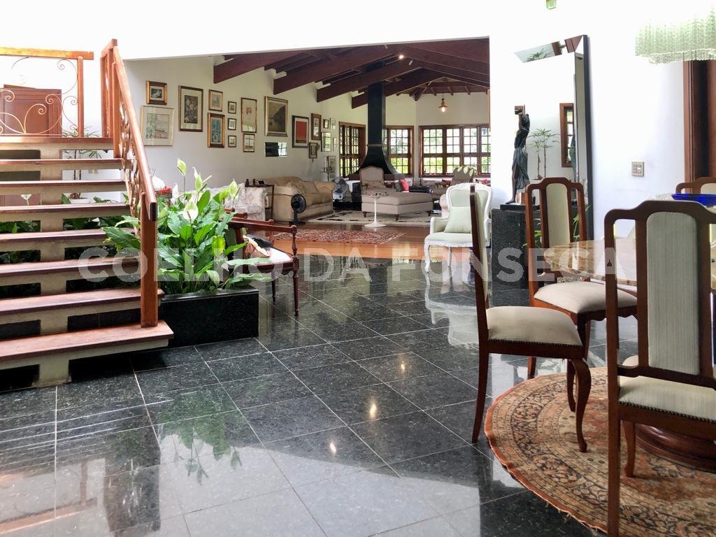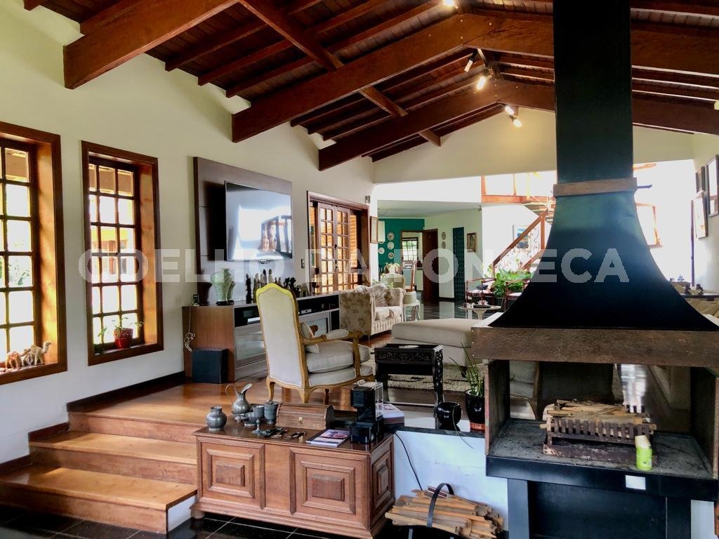 Linda casa voltada para área de preservação permanente à venda na modalidade porteira fechada, com planejados e eletrodomésticos de primeiríssima qualidade! Conta com adega, área gourmet, home theater, piscina, academia e lareira. Ensolarada, bem arejada e iluminada. Pisos em tacos de madeira, porcelanato, fulget, pedra portuguesa e deck. Jardim com lindo projeto de paisagismo de Marcelo Faisal. Paredes verdes, 3 Jabuticabeiras e 6 Grumixamas. Calçada que circunda a casa com diversas árvores de Pau Mulato. Projeto de iluminação. Academia envidraçada com espelho e depósito. Vestiário com banheiro completo para atender a academia, área gourmet e piscina. Piscina de alvenaria com borda infinita revestida em pedra Hijau, aquecida solar, iluminada com prainha, deck solarium e casa de máquinas. Copa cozinha repleta de armários planejados Formabella, com bancada em granito, 2 cubas inox e despensa. Forno, micro e fogão Brastemp Gourmand. Marque sua visita.