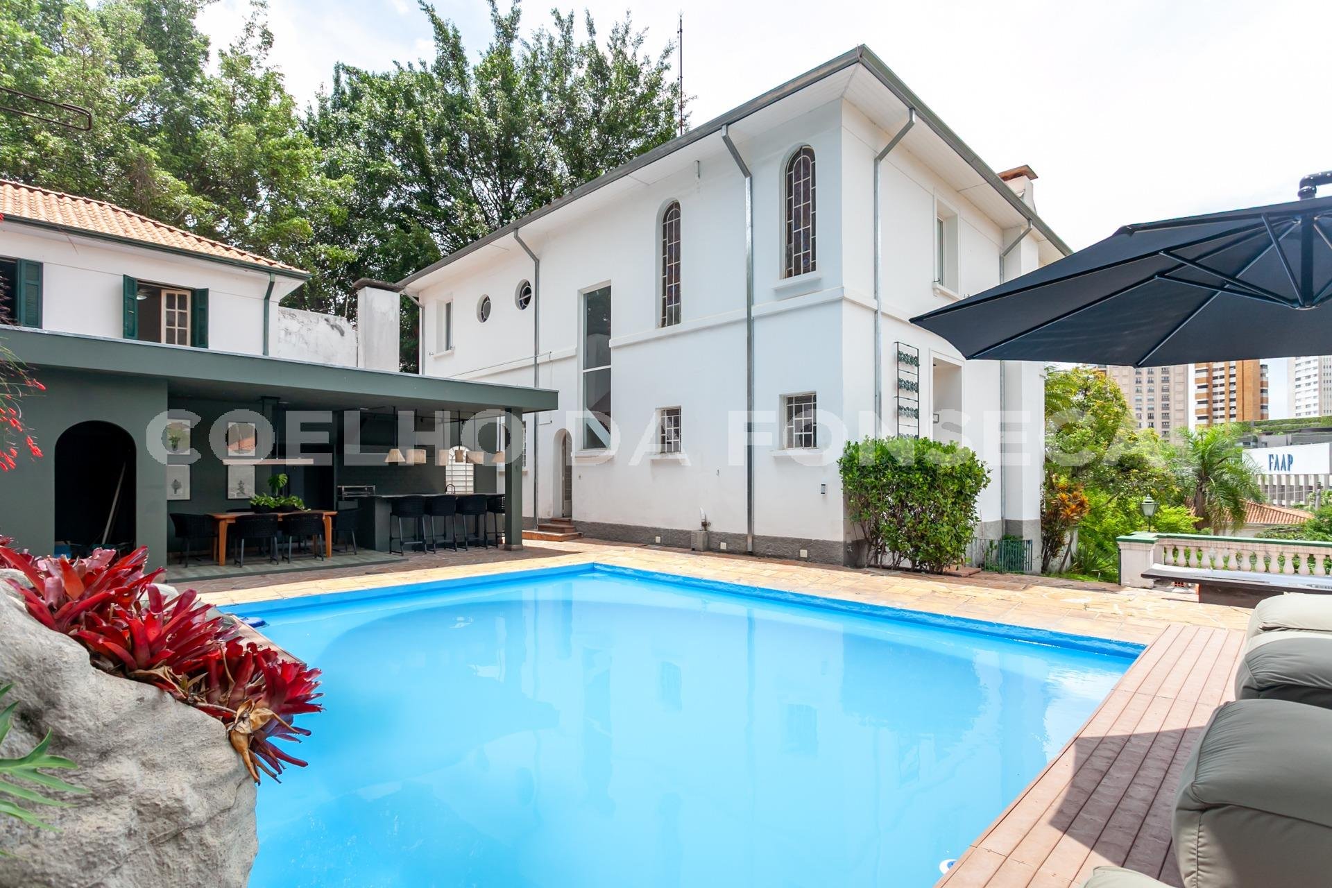 Maravilhosa cobertura com espetacular vista panorâmica da cidade. São mais de 800 m² de área útil, no charmoso bairro de Higienópolis. Edifício Mont Blanc, alto padrão, com lazer completo. Elevador chega aos dois andares, proporcionando conforto e agilidade. São seis vagas, dois depósitos, no primeiro piso ficam as quatro suítes, muito amplas, sendo que a master possui lareira e vasta varanda e family room. Piso superior possui ala social com lindo vitral na entrada, sala de estar, jantar, de música com bar, living com lareira, churrasqueira e sala de almoço envidraçada, com vista para a linda piscina. Agende uma visita exclusiva.
