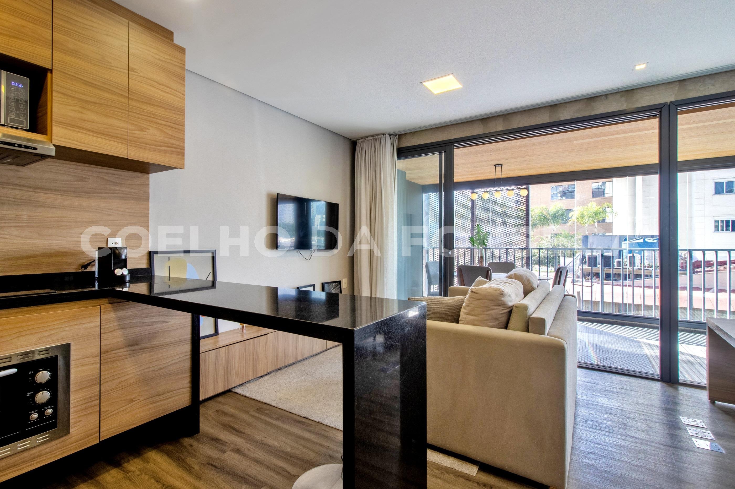 Studio, totalmente mobiliado, com muito bom gosto, pronto pra morar. Empreendimento moderno, com lazer : piscina no rooftop com vista espetacular, jacuzzi, sauna, quadra de squash, academia e salão de festas. Super bem localizado, a poucos metros da Av. Faria Lima e da Av. JK , proximo a tudo que o bairro oferece de melhor. 44 m² , 1 vaga