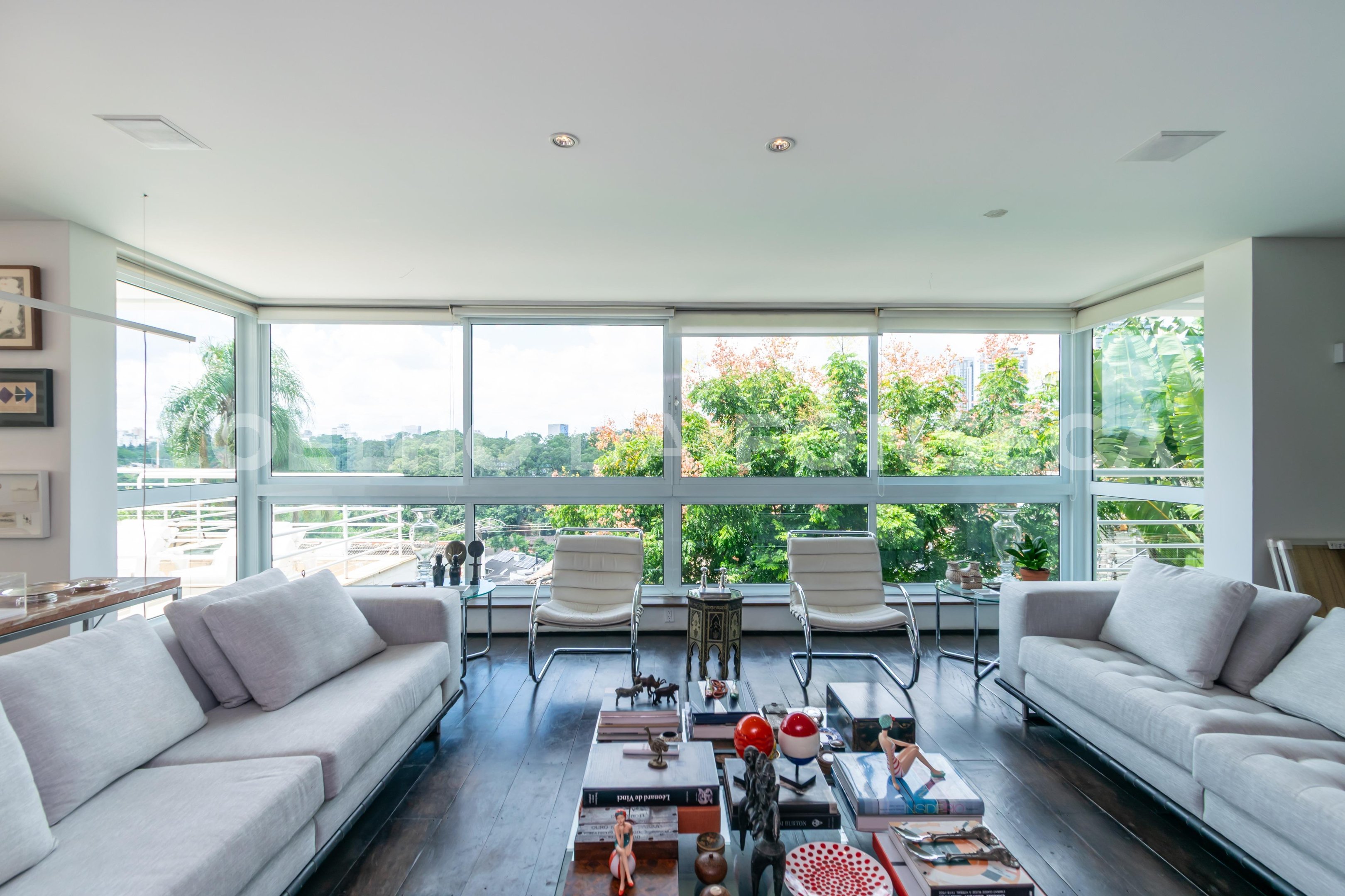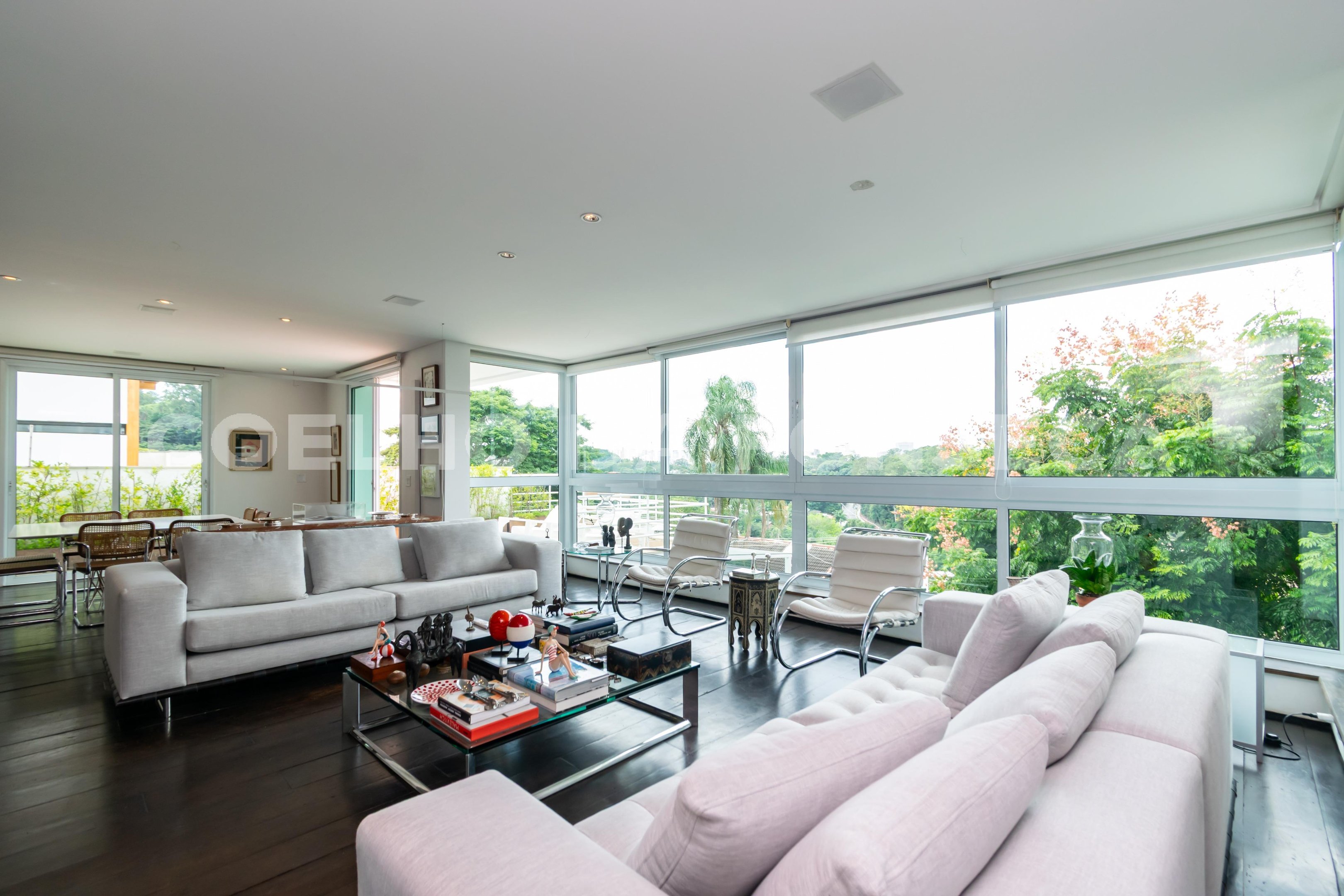 A Casa Modernista foi construída em 1964, um projeto do arquiteto húngaro Eugenio Szilagyi, que figura entre os fundadores do Movimento Modernista na Arquitetura Brasileira. A Casa foi premiada na Bienal de Artes e Arquitetura de SP.ugenio Szilagyi participou da elaboração do projeto da casa Fundação Oscar e Maria Luiza Americano juntamente com Osvaldo Bratke. Os jardins da casa foi residência familiar do arquiteto. Os jardins da casa tem espécies remanescentes da Mata Atlântica e foram projetadas nos moldes de Burle Max. Como parte integrante do salão principal da casa, um enorme painel cerâmico do artista Kroly Pichler, também fundador do Movimento Modernista na Arquitetura Brasileira. A Casa tem iluminação natural perfeita, com ventilação cruzada, completamente arejada com amplas portas e janelas de vidro que abrem para o terraço espetacular que circula o andar térreo e piscina, em integração completa com os jardins. Piso térreo: O hall de entrada abre para amplo living para diversos ambientes e lareira, sala de jantar integrada em desnível com piso em madeira de lei, lavabo, chapeleira, sala de almoço, cozinha e ampla dispensa. Segundo piso: suite do casal com jardim de inverno, solarium privativo, sala intima privativa com lareira, galeria, amplo dormitório, closet, em outra ala do segundo piso mais 3 quartos e 2 banheiros com entrada independente. A casa ainda conta com piscina, churrasqueira, solarium e salão de festa circundados pelo exuberante jardim. Edícula com 2 suítes e lavanderia.