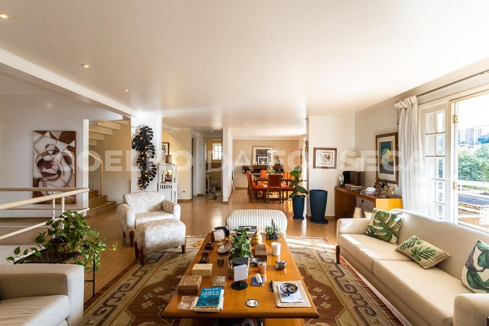 Excelente residência em localização privilegiada do bairro, rua arboriza. Quatro suítes e escritório, ambientes amplos e arejados. Salas e suíte abrem para jardim. Ar acondicionado. Área externa agradável e churrasqueira.