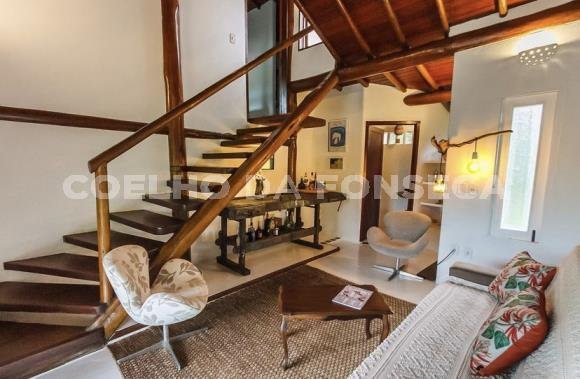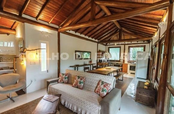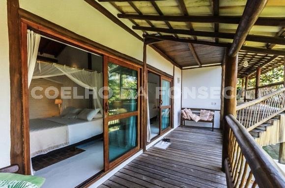 Bangalô super charmoso, estilo balinês, em praia particular, rodeado por uma natureza exuberante. O living integrado à varanda e à cozinha, com vista totalmente desimpedida para o mar. O Condomínio possue campo de golfe, campo de polo, clube com piscinas, bar e restaurante, quadras de tênis e beach tenis, pista de pouso, segurança 24h, playground, lojas de conveniência, pousadas e restaurantes com ótima culinária. A praia é de areia clara e água límpida, inclusive com tartarugas, e conta ainda com serviço de cadeiras e ombrelones. O condomínio fica à 18 quilómetros ao Sul de Trancoso e à 40 minutos de Caraíva.