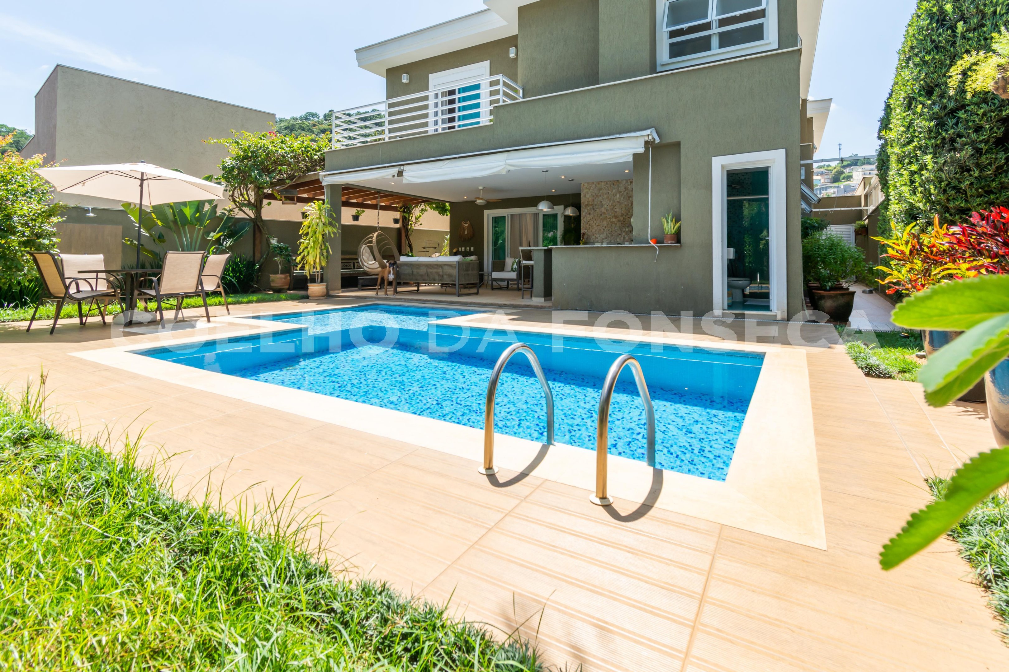 Arquitetura moderna que explora o declive do terreno, em concordância com o design de interiores que contempla o estilo industrial. Living integrado com a cozinha, com linda vista para a mata preservada. O escritório é um local prazeroso para estar. Suíte Master com vista incrível, além de duas suítes no estilo americano. Além disso, há mais um quarto, totalizando quatro quartos. O espaço gourmet fica integrado com a piscina e está equipado com forno a lenha, forno de pizza e churrasqueira.