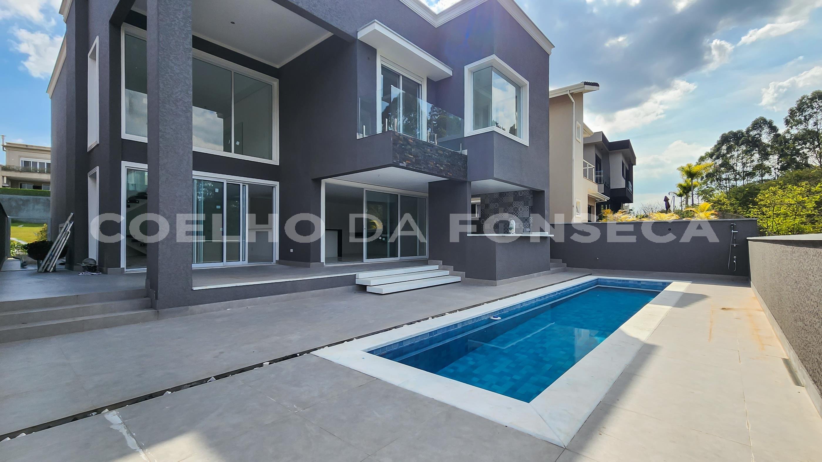 Belíssima residência com fino acabamento em mármore italiano, repleta em armários todas as suítes com Closet, sendo que suíte Master mais de 80m² com Hidro na suíte Master e na piscina. Lareira elétrica 3D. Espaço gourmet com varanda opção fechada vidro churrasqueira a gás, home cozinha completa Cooktop cinco bocas forno elétricos e armários, aquecimento central, piscina e casa com aquecimento solar, reservatório de agua e reuso localizada a100 metros da portaria.