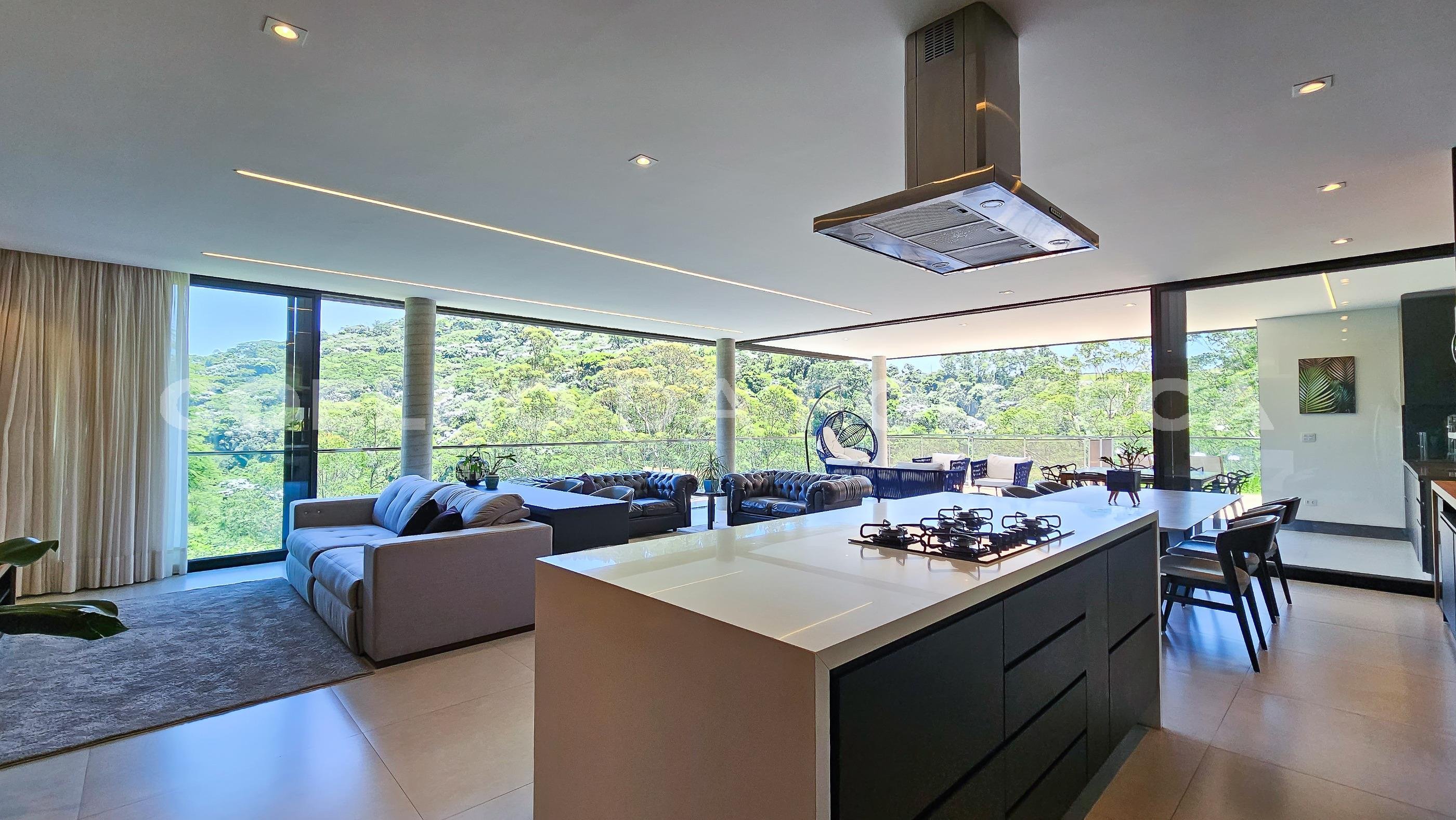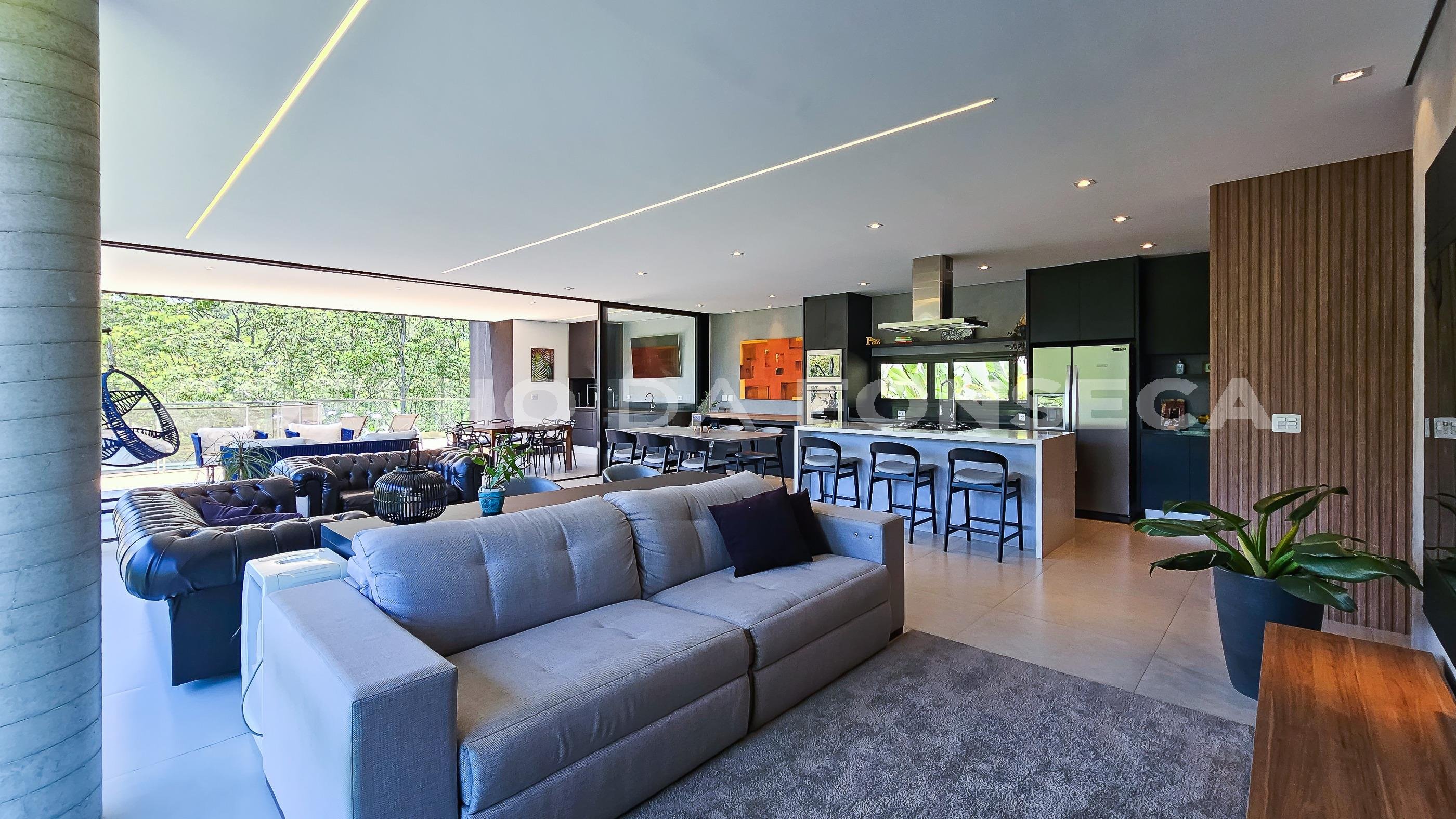 Casa recém-construída, arquitetura moderna e pronta para morar, localizada em lote com frente para duas ruas, garantindo ótima iluminação e privacidade. O living social oferece ambientes amplos e integrados, enquanto o espaço gourmet com churrasqueira e forno de pizza é perfeito para momentos de convivência. A área íntima inclui quatro suítes e um escritório, sendo uma suíte no térreo com acessibilidade para cadeirantes. Com projeto luminotécnico e piscina com borda infinita, esta propriedade está estrategicamente localizada em uma rua plana dentro do condomínio, próximo à área de lazer. O condomínio conta com diversas opções de lazer, como piscina coberta e descoberta, academia, quadras esportivas e fácil acesso às rodovias Castelo Branco e Anhanguera, além de estar próximo às melhores escolas de Alphaville. Este imóvel exclusivo reúne conforto, sofisticação e conveniência em um único lugar.