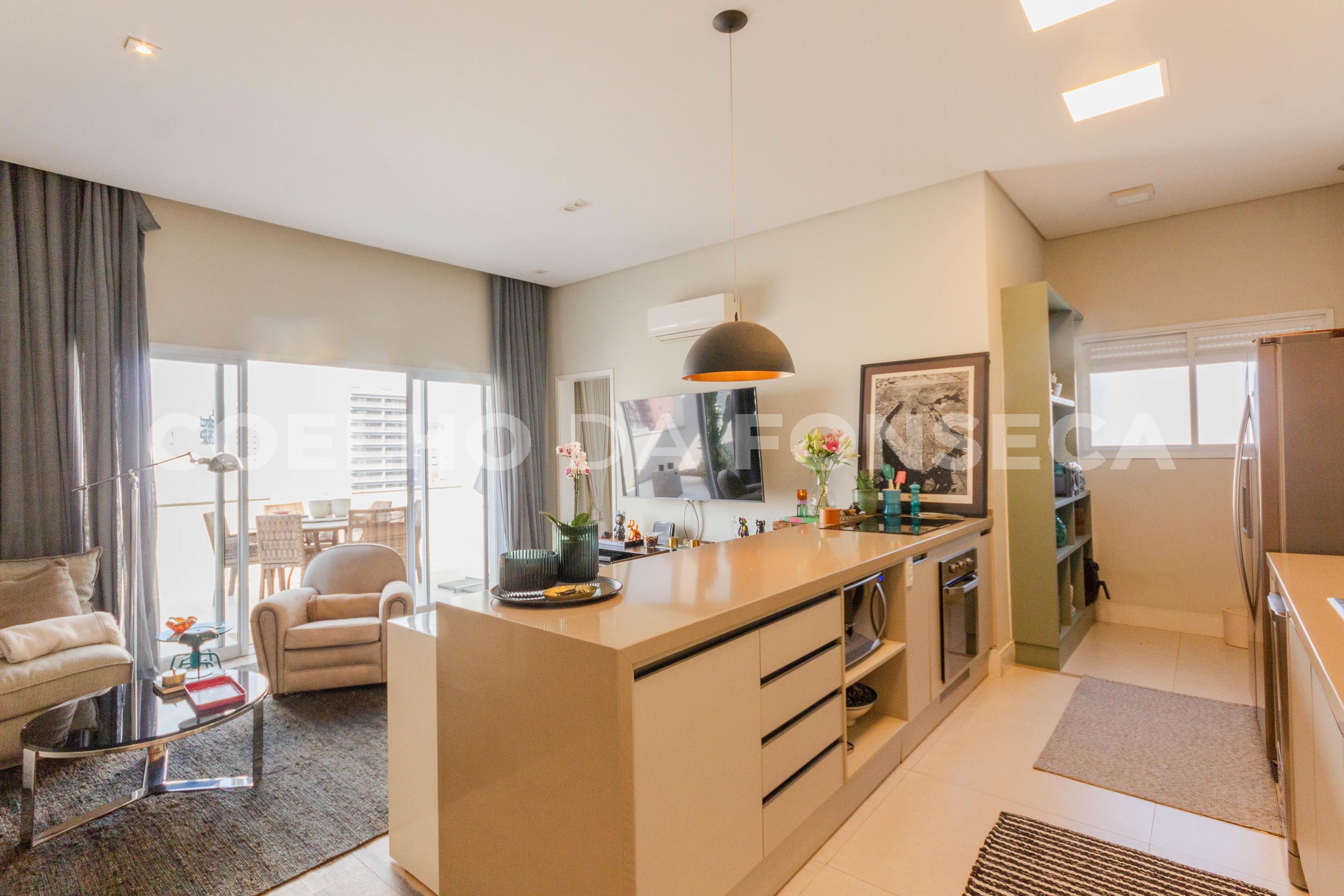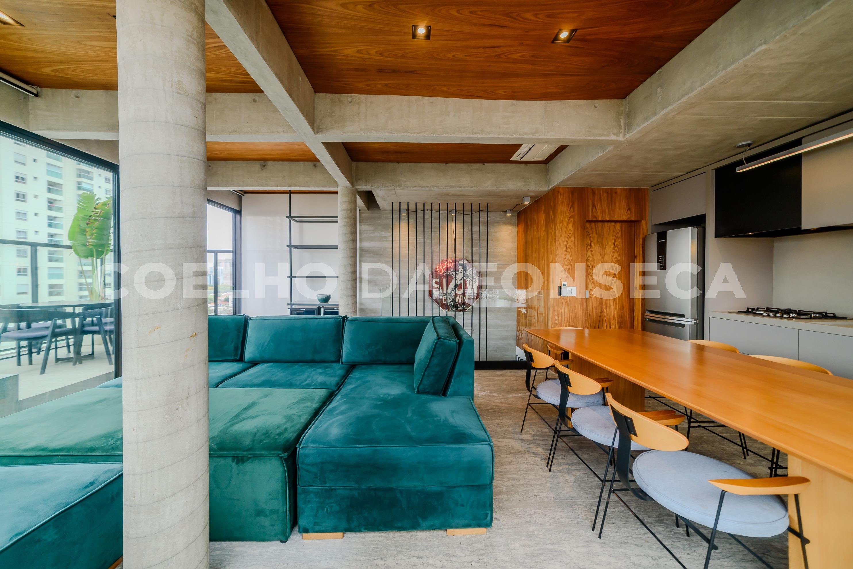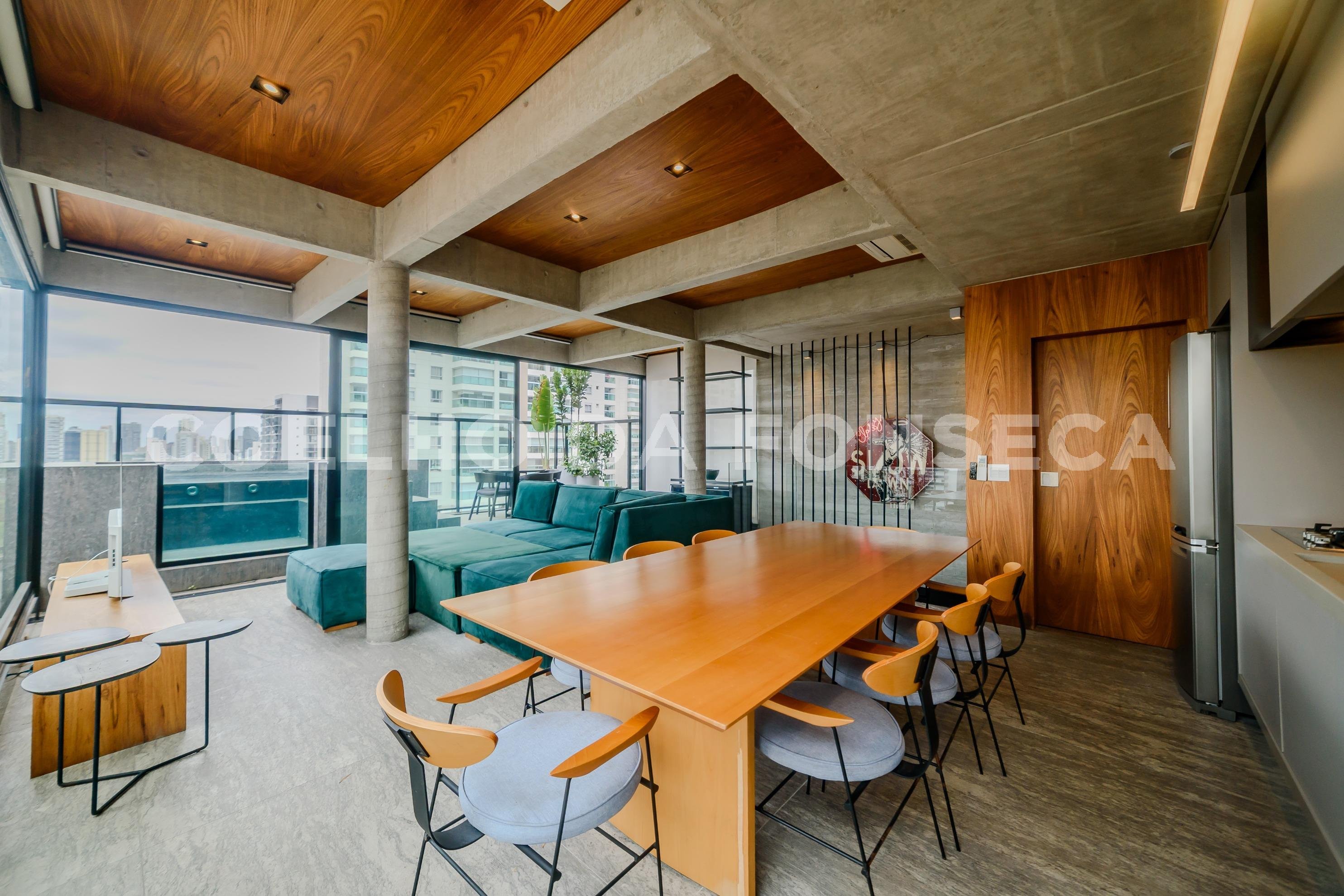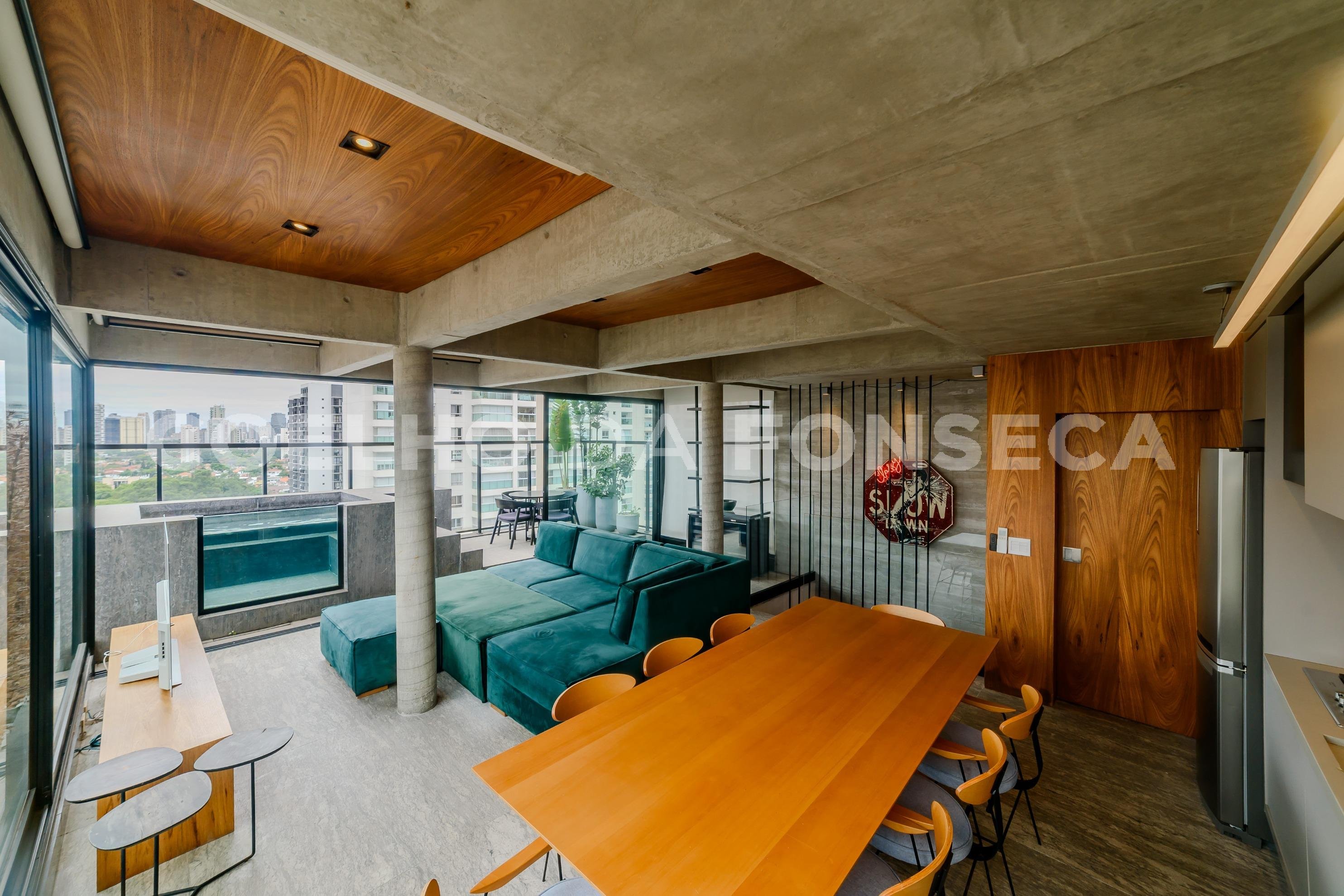 A unidade tem o andar térreo completamente integrado unindo cozinha, sala de estar e espaço para sala de jantar. Além do lavabo e espaço para home office. Tudo isso cercado por paredes envidraçadas de fora a iluminando todo o apartamento. A área de estar tem acabamento composto por finalização em cimento queimado estilo industrial complementado por revestimento e estante planejada em madeira, tornando o ambiente aconchegante. A cozinha com armários planejados de excelente qualidade, modernos, em cores sobreas, tem geladeira, forno e lava louças todos embutidos tornando o ambiente clean e funcional. No segundo andar está a suíte e sala de TV. A suíte é modelo da arquitetura de alto padrão. Espaçosa, possui varanda privativa, closet, cortinas do chão ao teto e banheiro com layout funcional com cuba central e áreas molhadas isoladas. O que facilita o uso com privacidade e versatilidade. O complemento é uma sala de TV intimista e aconchegante. Todos os ambientes possuem iluminação natural abundante, ventilação natural e toda a iluminação da unidade é dimerizada proporcionando mais conforto. O edifício é novo e possui área de lazer completa e refinada. Um lar que proporciona uma experiência única! Agende já sua visita para conhecer!